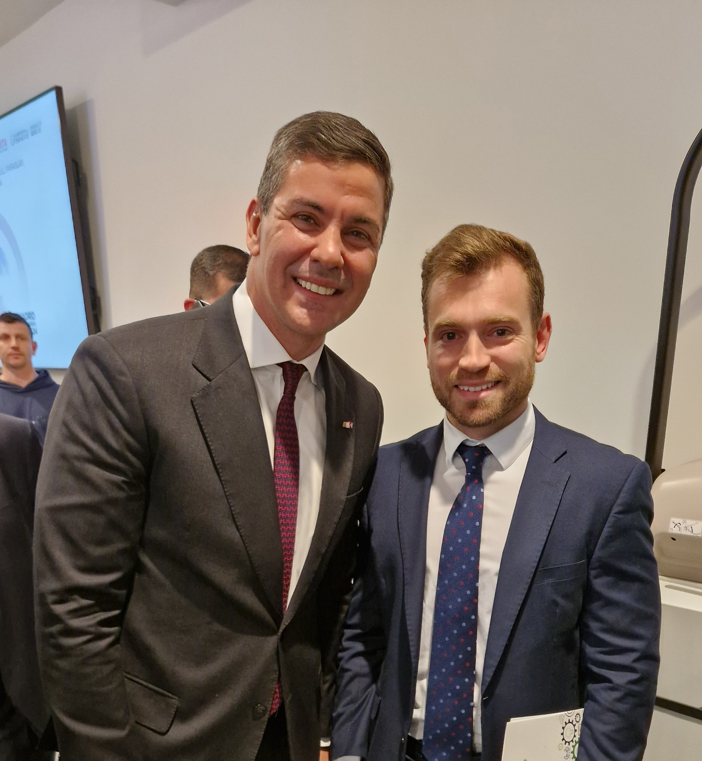 Guadalajara, 1 de marzo de 2024, Los técnicos de la Oficina Impulsa José María Olivares y Juan Lozano, han asistido al encuentro empresarial España-Paraguay, celebrado el pasado miércoles, en la sede de CEOE nacional. Los técnicos de la Oficina pudieron mostrar al presidente de la República del Paraguay, Santiago Peña, las ventajas empresariales que la provincia de Guadalajara ofrece para la inversión, invitándole a conocer la provincia. Un encuentro que sirvió para poner de relieve las relaciones económicas y empresariales bilaterales, y valorar vías de colaboración conjuntas para colaborar en proyectos de interés común para ambos países.
