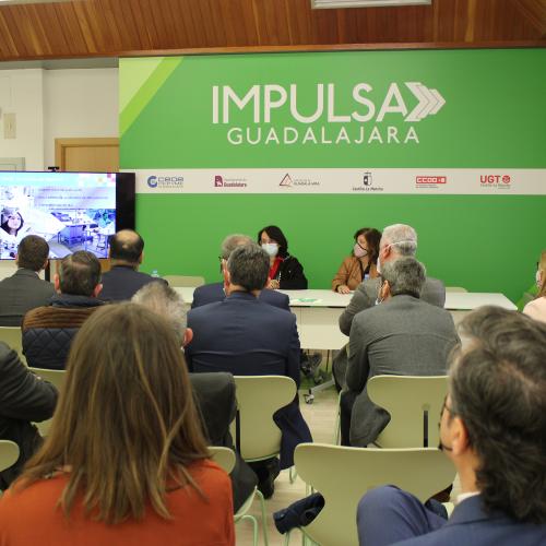Tras esta recepción, la comitiva se trasladó hasta la oficina de Impulsa Guadalajara donde tuvo lugar una reunión en la que además de empresarios de la provincia de Guadalajara de sectores como el agroalimentario, siderometalúrgico, turismo y energía, entre otros, estuvieron presentes tanto el delegado de la Junta de Comunidades de Castilla-La Mancha, como la presidenta de la Confederación de empresarios de Guadalajara, así como José Luis Vega, presidente de la Diputación provincial de Guadalajara, Rafael Pérez Borda, primer teniente de alcalde del ayuntamiento de Guadalajara, Santiago Baeza, tercer teniente de alcalde del ayuntamiento de Guadalajara y Susana Blas, delegada de Economía, empresas y empleo de la Junta de Comunidades de Castilla-La Mancha.